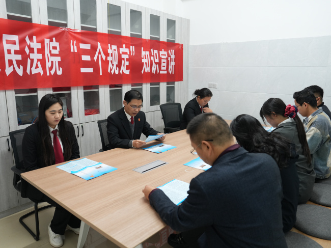 11月4日上午,民权法院督察负责人丁玉东带领干警先后走进河南书华律师事务所、河南利伟建材有限公司、秀湖双溪湾小区,开展 “三个规定” 知识宣讲活动,切实提升群众对司法公正的认同感。