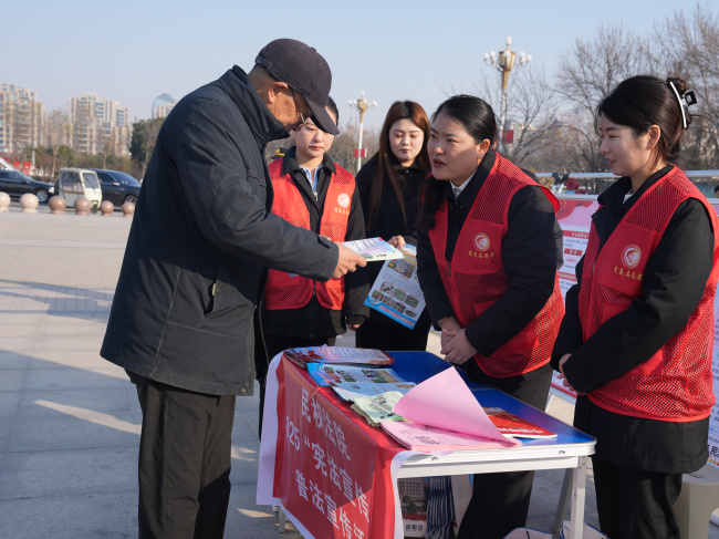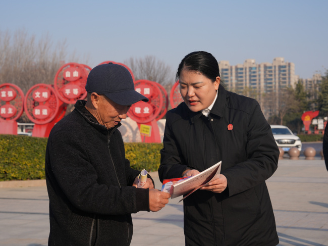 活动现场,法院干警在广场设立了宪法咨询台、典型案例展板区和普法资料发放点。干警们为过往群众发放宪法、民法典、防范非法集资、劳动权益保护等便民法律宣传资料,耐心解答群众关于邻里纠纷、婚姻家事、遗产继承等方面的法律咨询。针对老年群体,干警们还专门讲解了养老诈骗的常见法律知识,帮助老年人筑牢法律 “防护墙”。