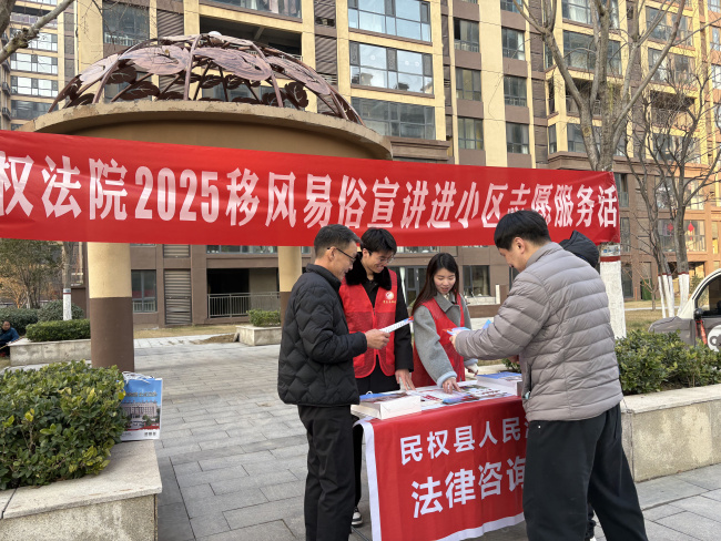 12月18日,民权县人民法院干警来到海棠公馆小区开展送法进社区志愿服务活动。