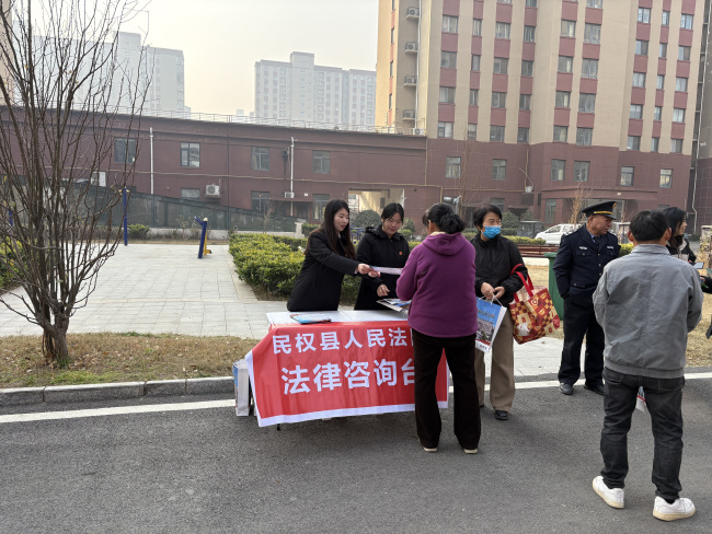 12月19日,民权县人民法院干警来到富民园开展送法进社区志愿服务活动。