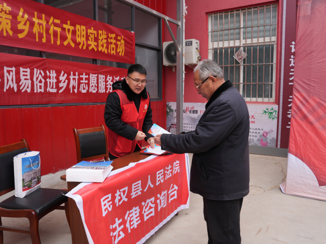 2月6日上午,民权县人民法院组织干警,来到庄子镇开展移风易俗进乡村志愿服务活动,在家门口为群众送上法律服务。